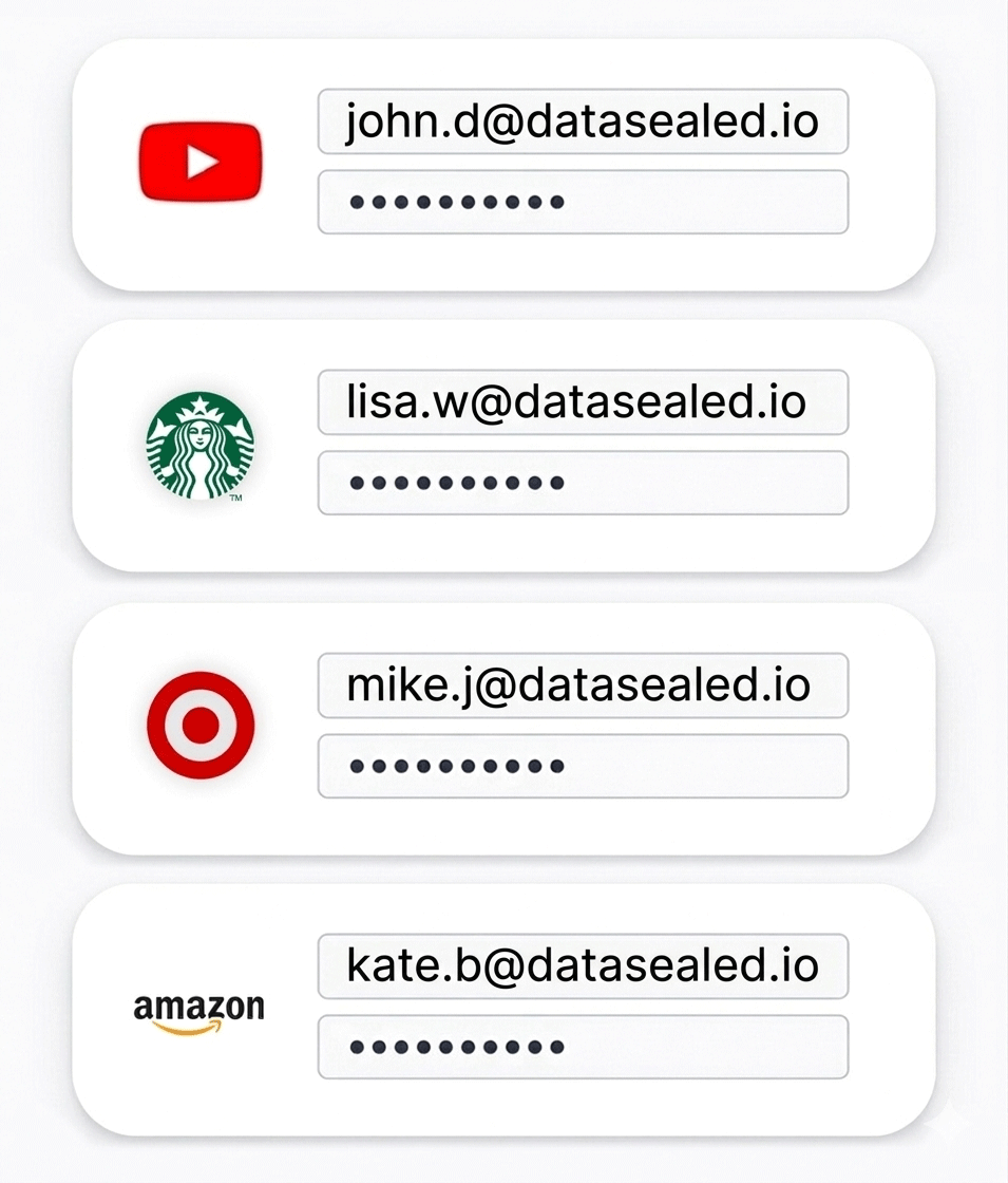 DataSeal provides virtual email addresses and SMS phone numbers you can use to sign up for websites, apps, and services without exposing your real contact information. Each service gets its own unique email or number, reducing spam, tracking, and data exposure while still allowing you to receive messages and two-factor authentication codes.